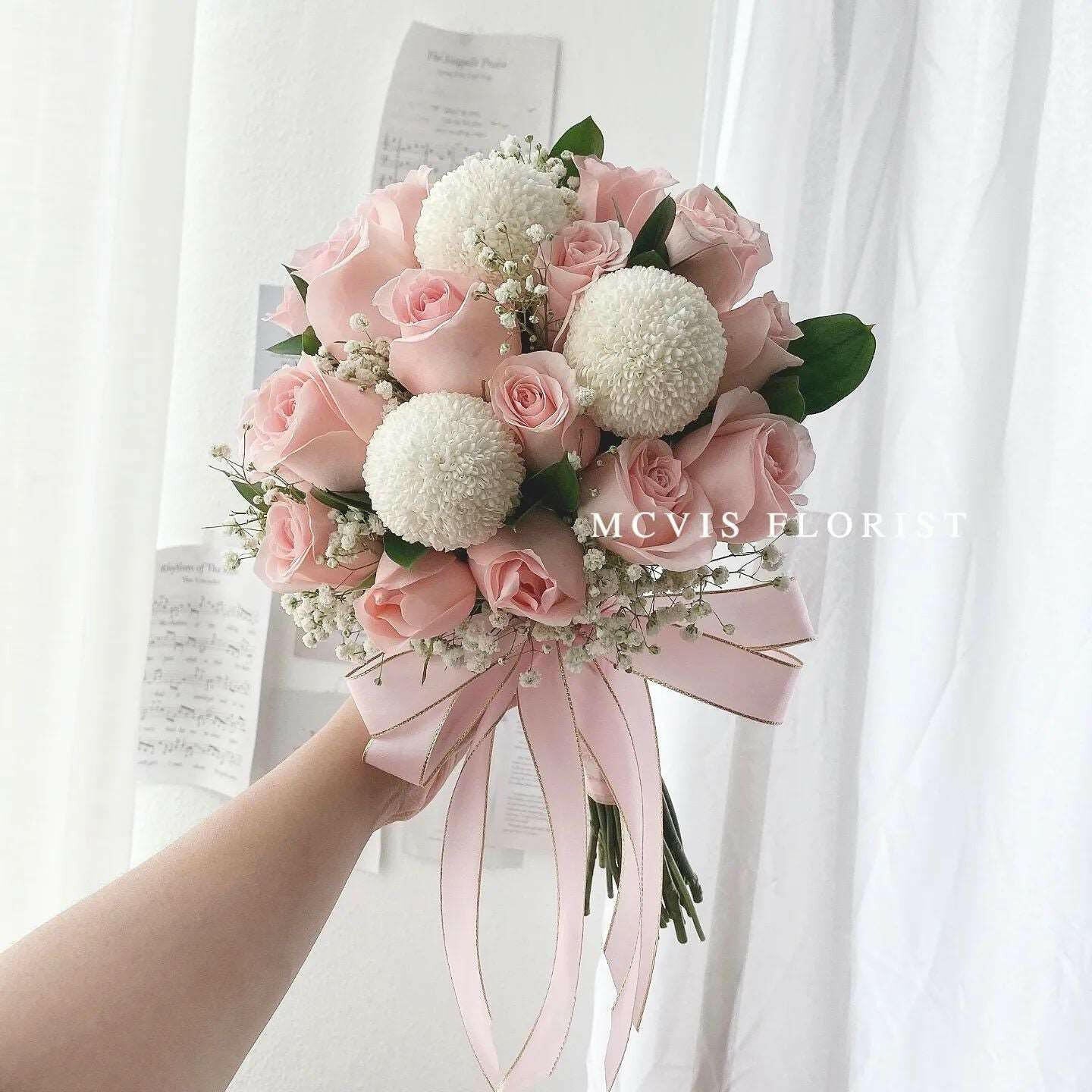 • 18-20 pcs Pink Roses with Filler Flowers