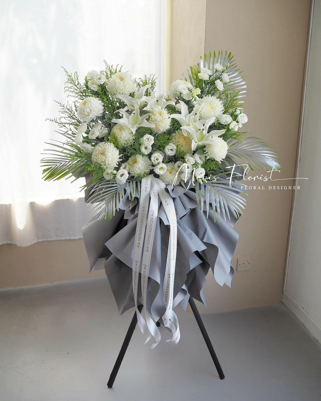 Send your love & condolences with sympathy flowers. Elegant funeral flower arrangements delivered with your personal message. Available same-day & express delivery in Penang island & mainland.