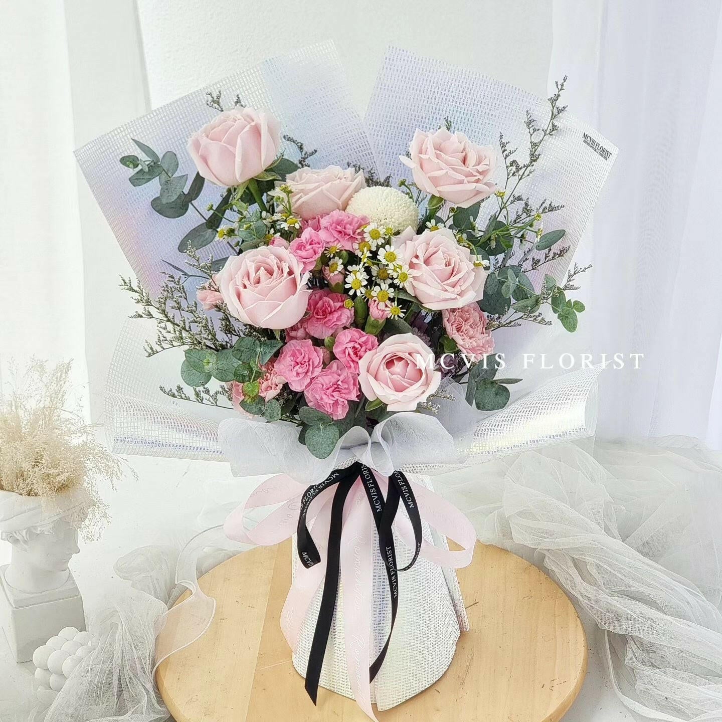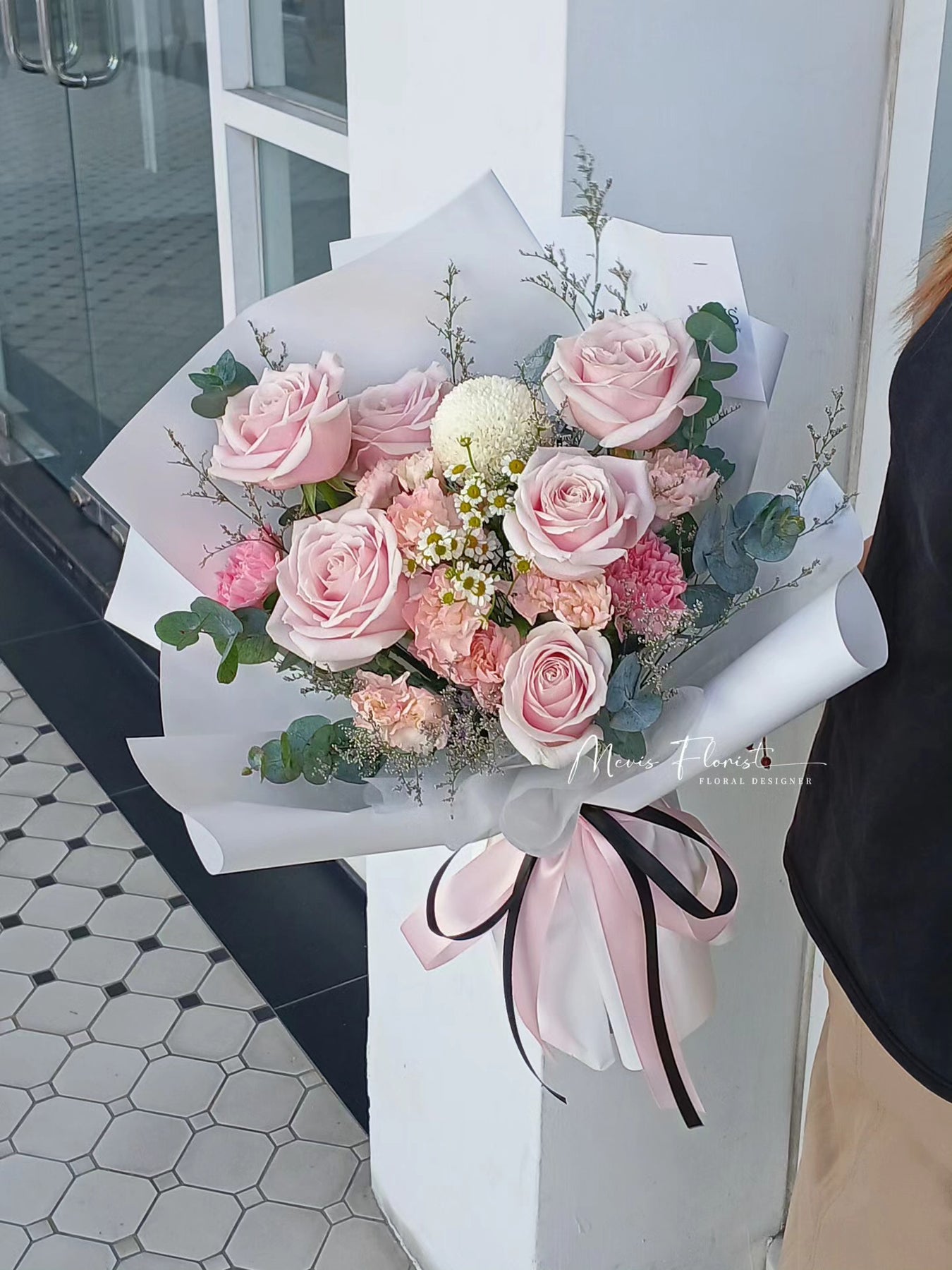 • 5 pcs Mawar Merah Jambu dengan Pengisi Campuran