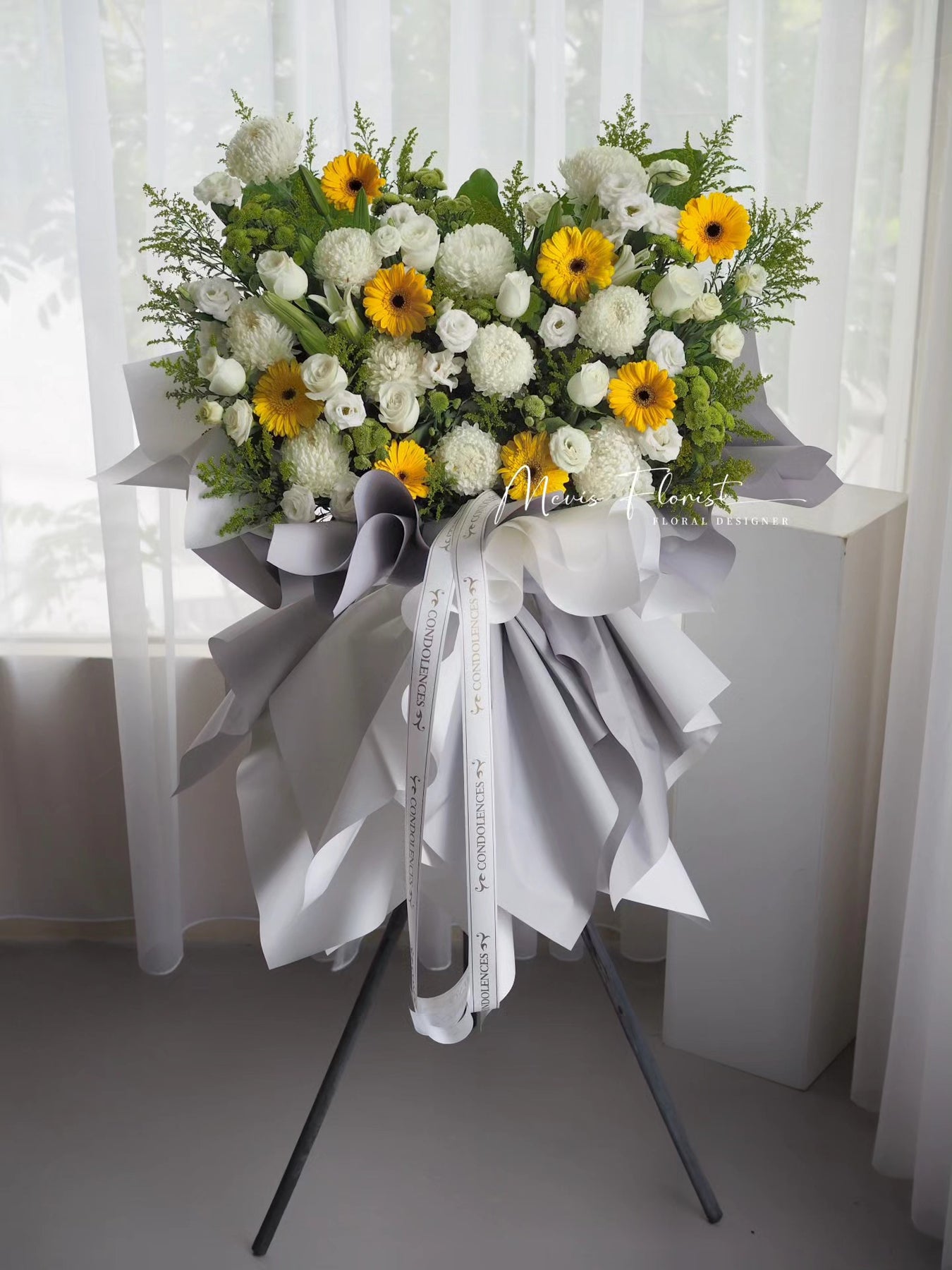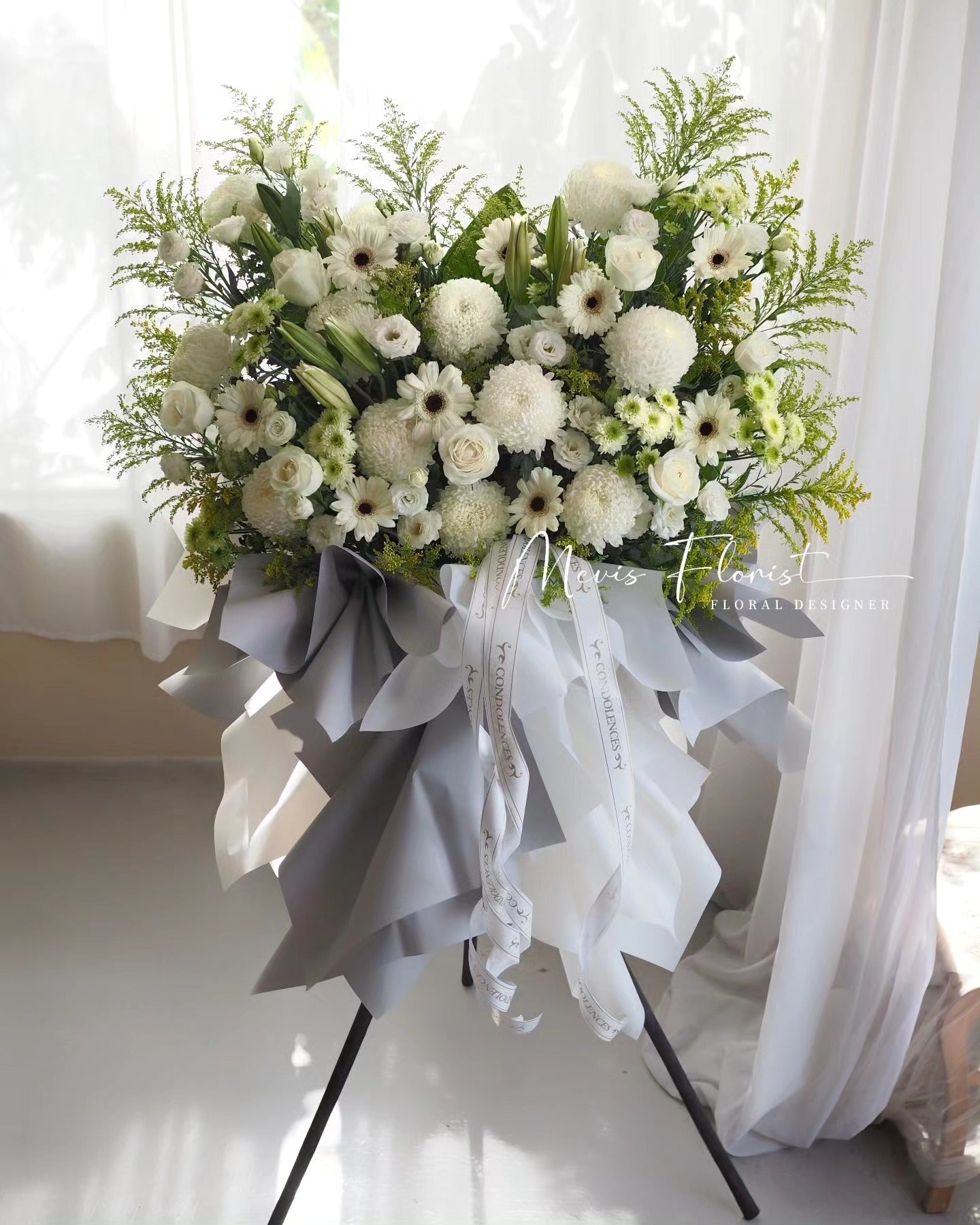 • “宁静的告别”是一款清新美丽的花束,非常适合表达哀悼。精致的花瓣和舒缓的芬芳,在艰难的时刻带来一丝慰藉。让“宁静的告别”为哀悼的人们带来慰藉和慰藉。